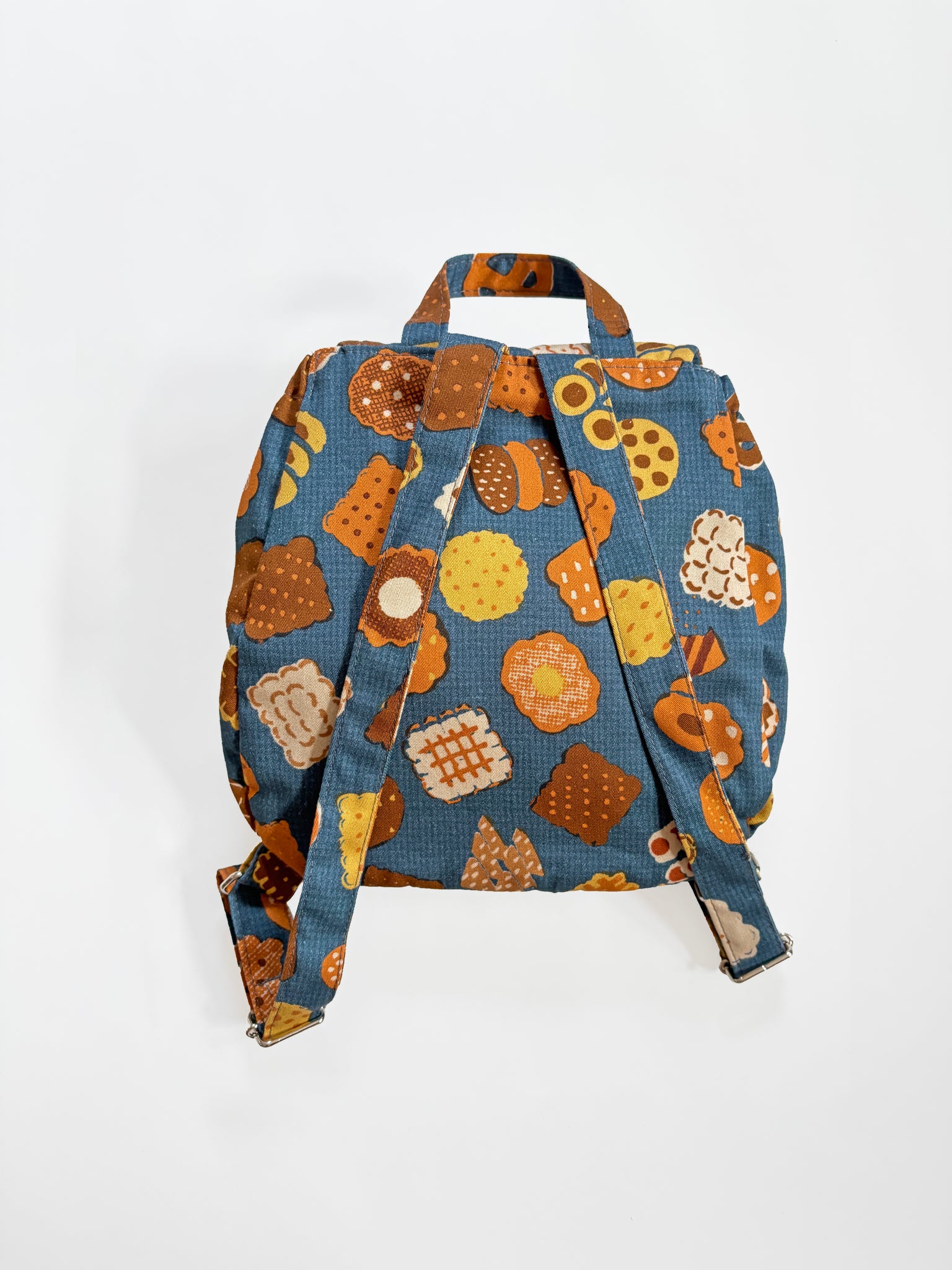 蓋付きのデザインで、小さな背中にも似合う可愛らしいシルエットです。