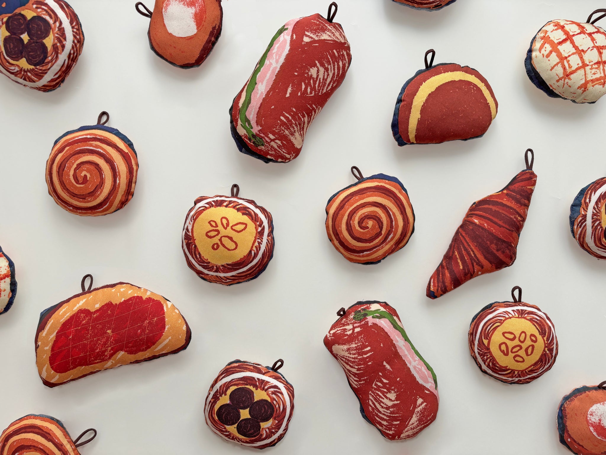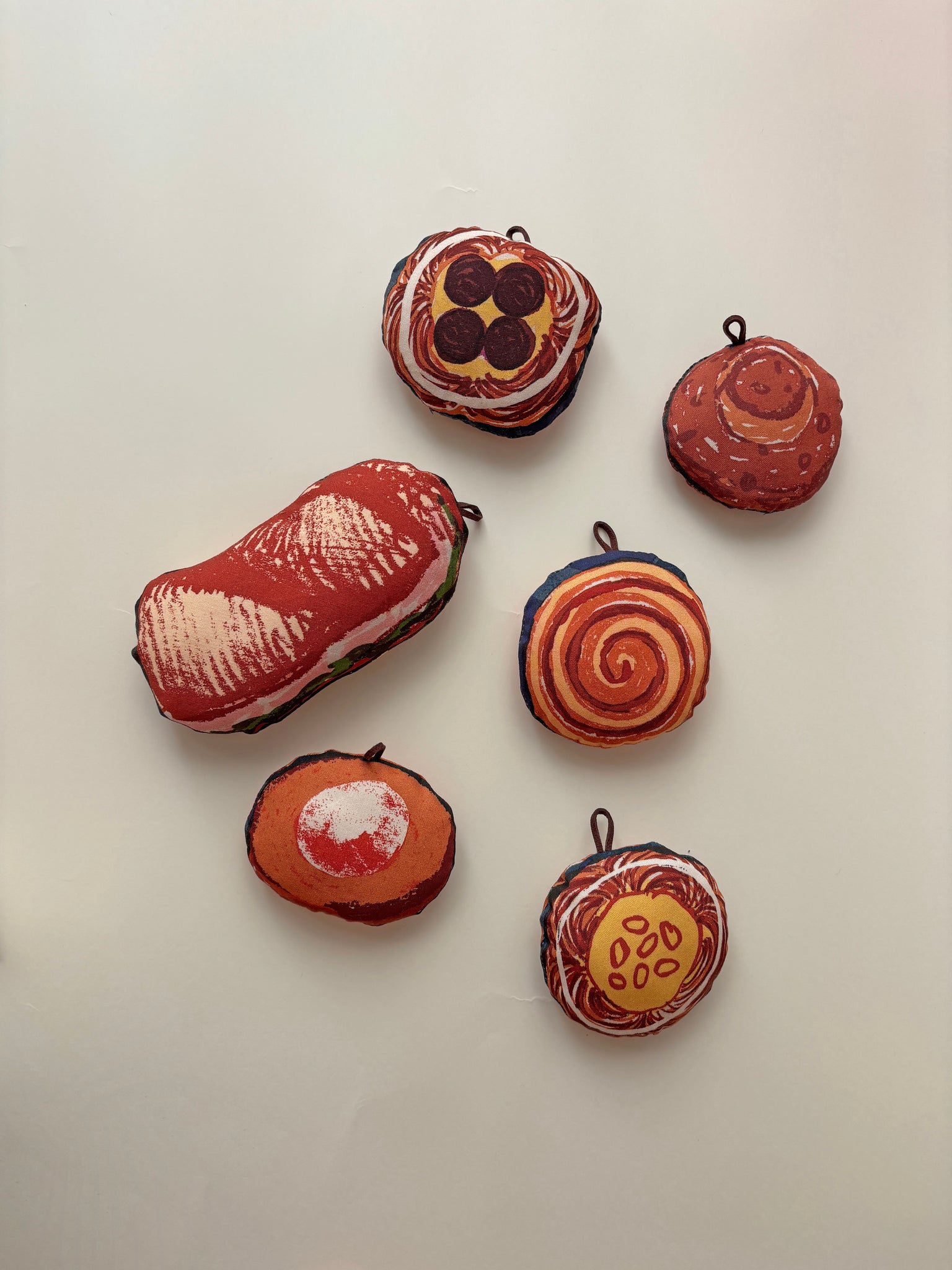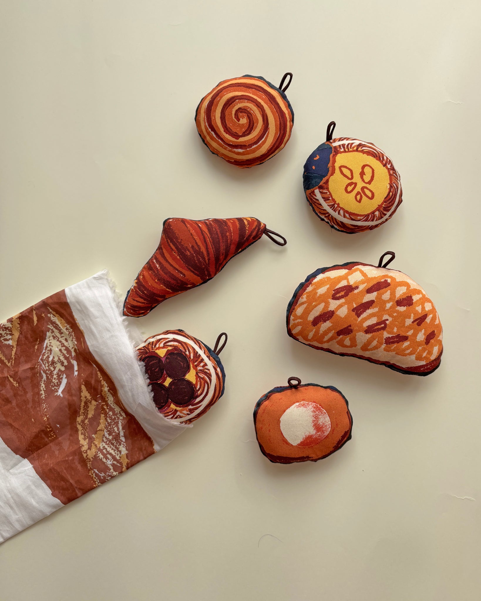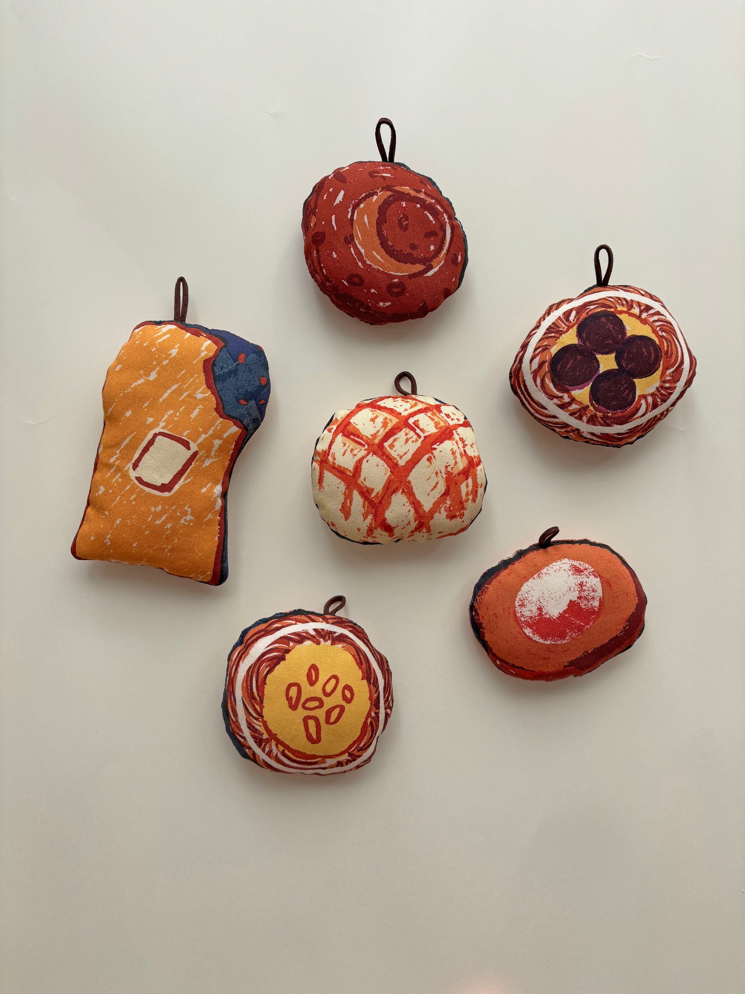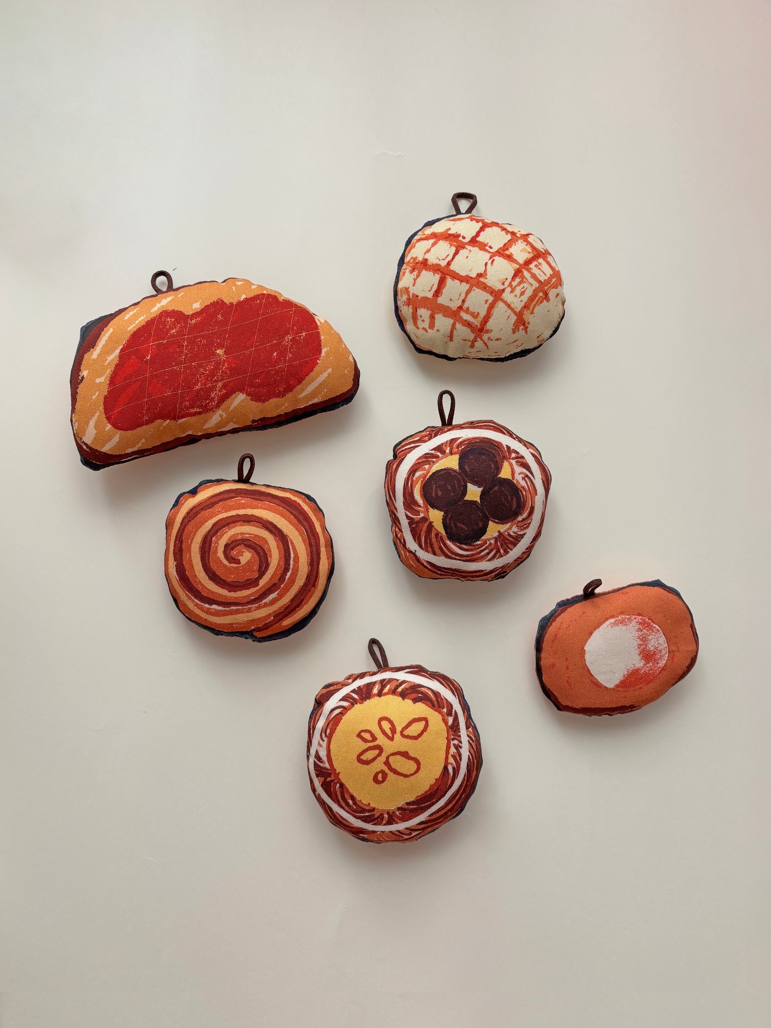 広島アンデルセンとのコラボレーションテキスタイルから誕生した、パンモチーフのテキスタイルオーナメント6点セット。