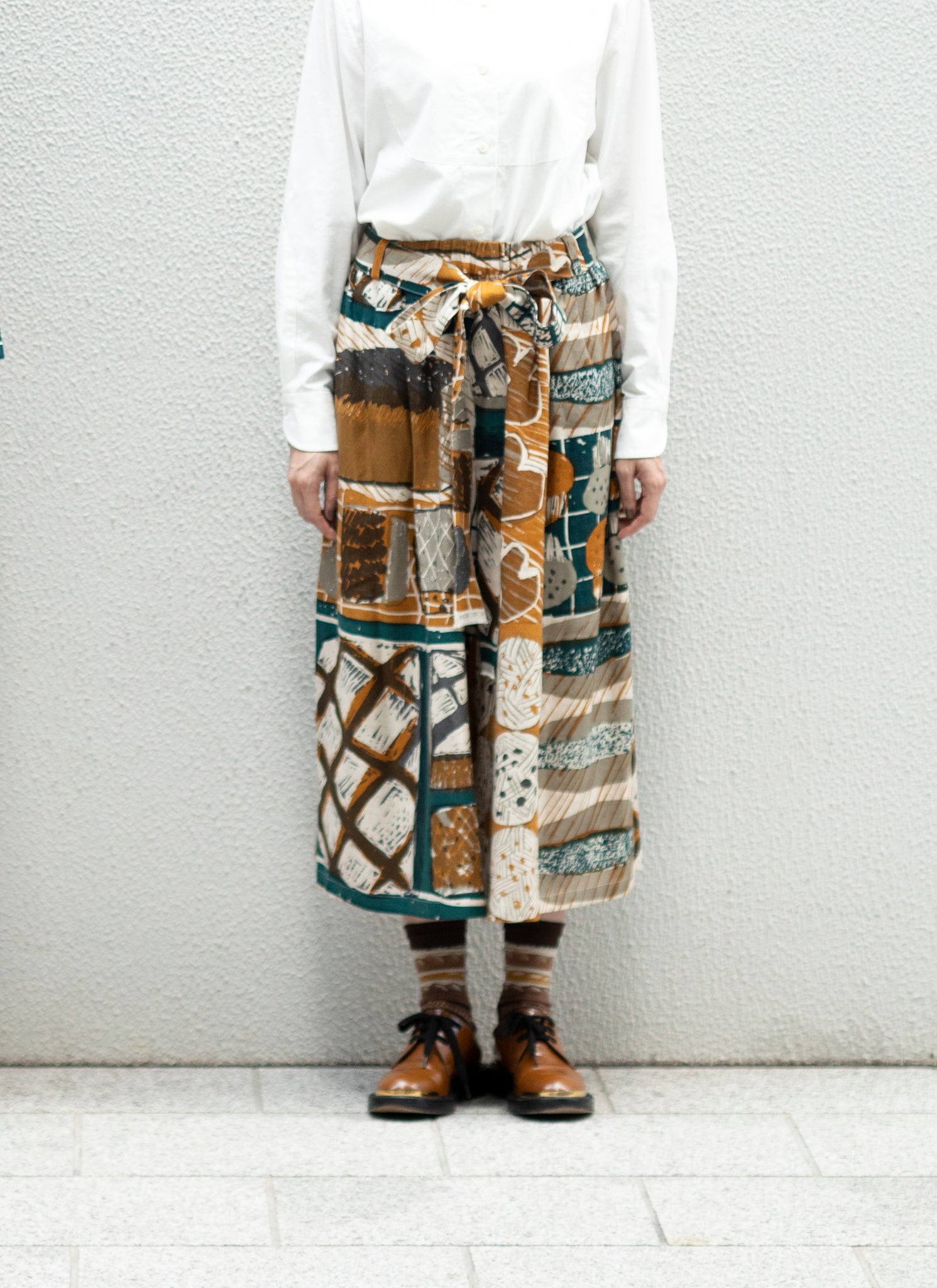 裾広がりで柄䛾映えるシンプルなロング丈キュロットパンツです。