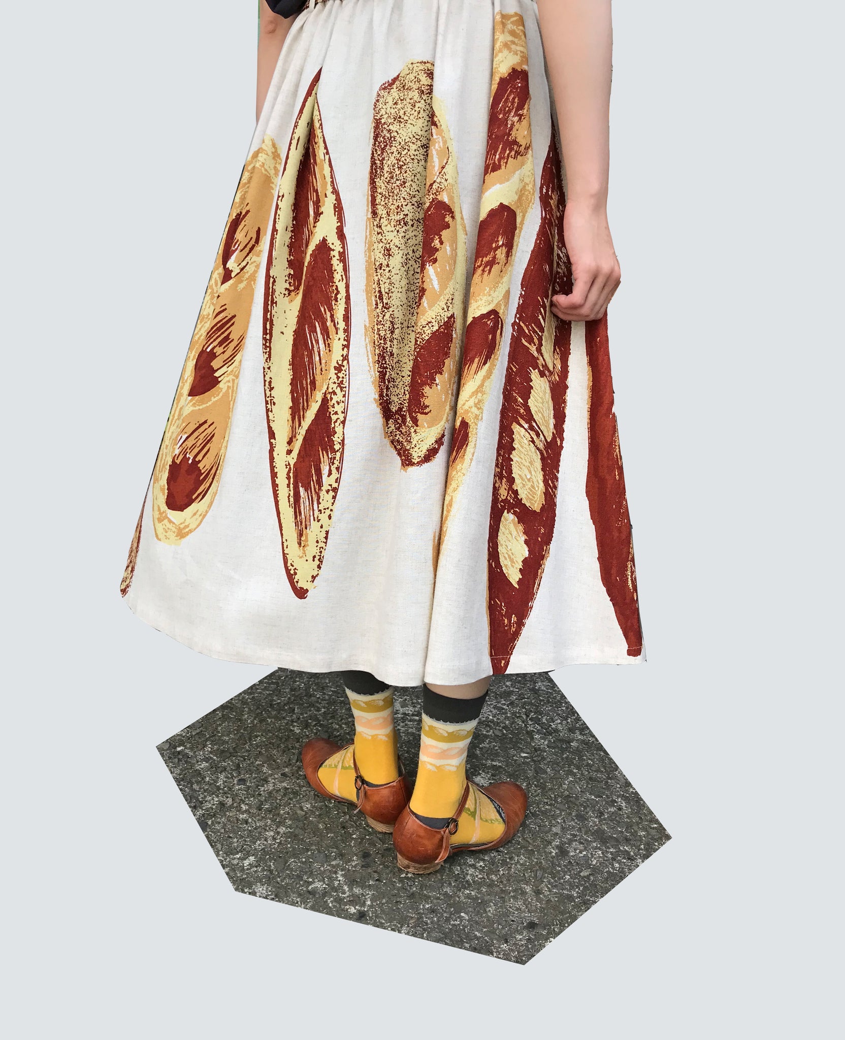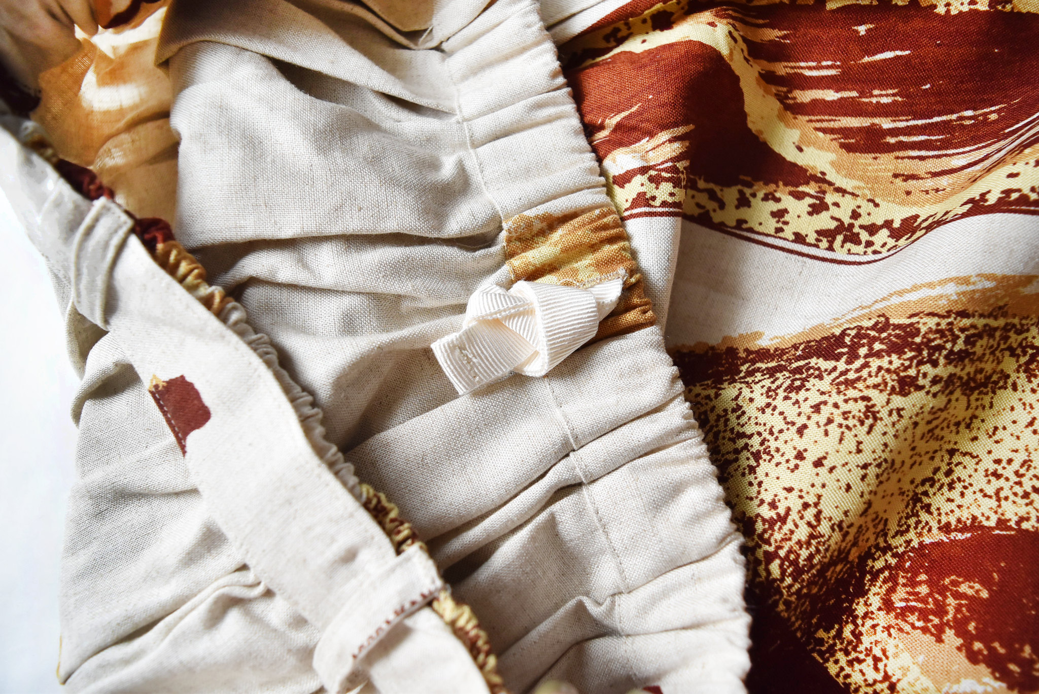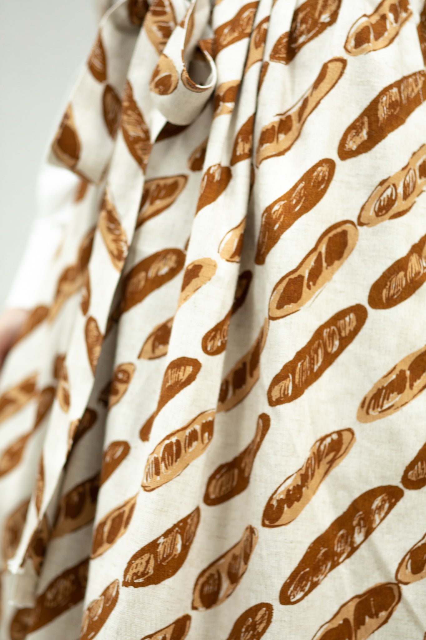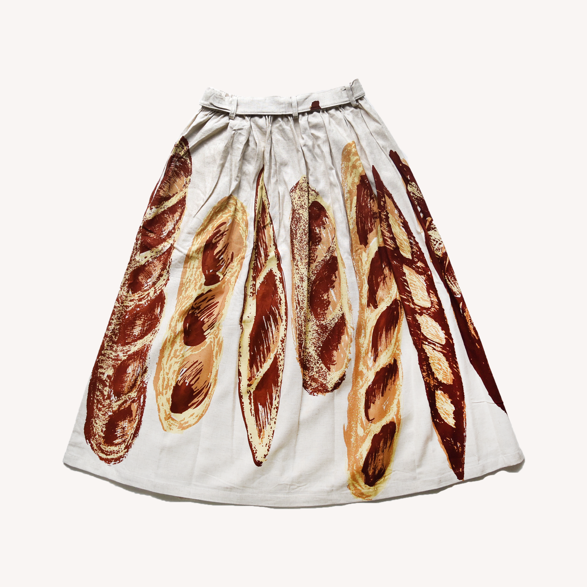 ゆったりしたサイズ感で、ウエストに一周ゴムが入っていて気軽で楽ちんです。 ベルト内側にウエスト調整できる紐付。 肌当たりが良い柔らかな綿ヘリンボンテープを使用。 便利なサイドポケットがついていてデイリーに活躍してくれそうなスカート。